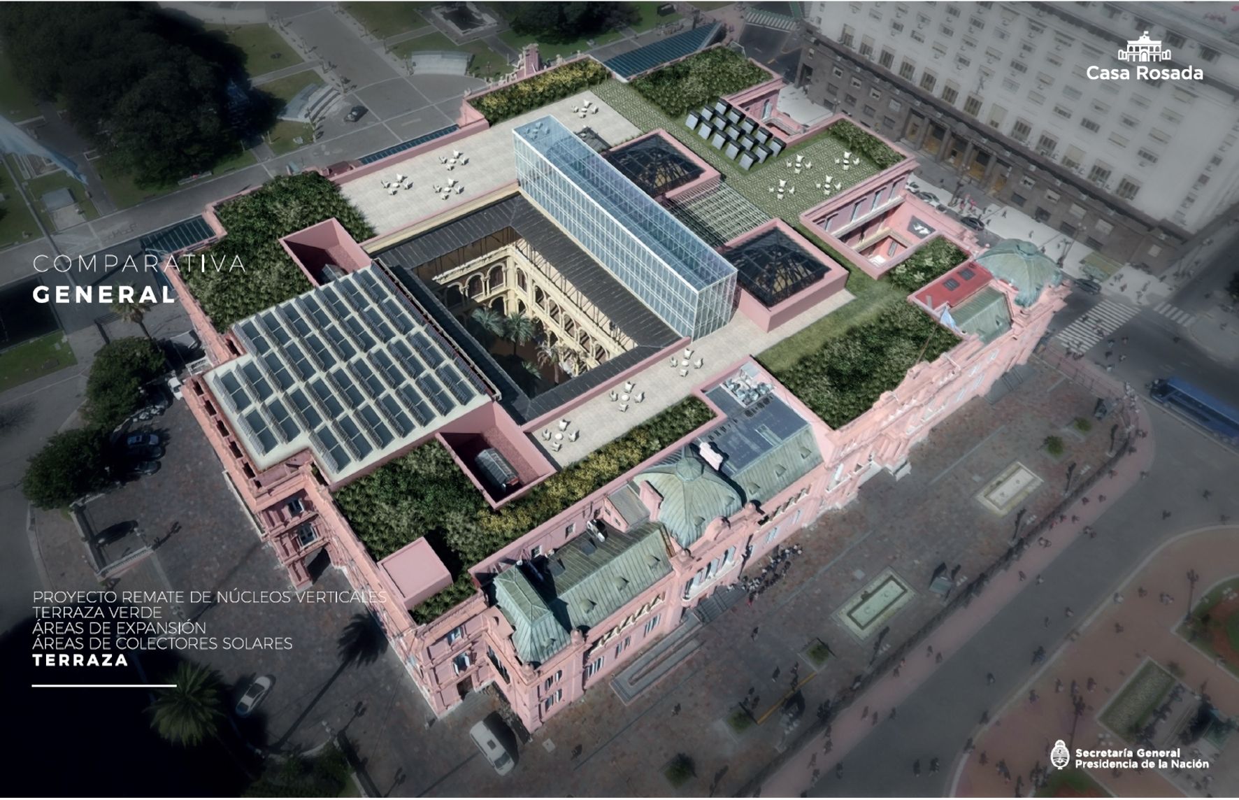 Según el funcionario, actualmente la Casa Rosada presenta un "alto nivel de deterioro y degradación estructural, espacios físicos obsoletos y falta de espacios de trabajo funcionales, carencia de un criterio general que disponga la optimización de los espacios, inexistencia de fuentes únicas de información técnica y de planos sobre el edificio y deficiencia de sanitarios acordes a criterios del buen arte". En el proyecto están incluidas luces de LED y una huerta orgánica en la terraza.