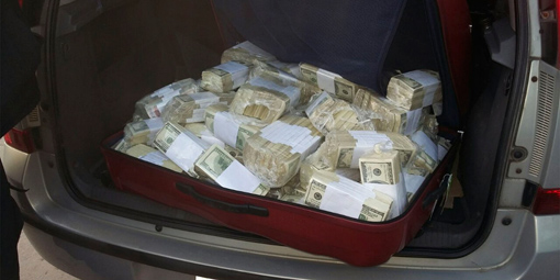 Fuentes policiales indicaron que, en ese marco, fueron secuestrados cuatro bolsos con fajos de dinero -en su mayoría eran dólares y también euros- por un monto que, luego del mediodía, era estimado en “más de 8 millones de dólares”, dado que se trataba de “160 fajos de 50 mil dólares cada uno”.
