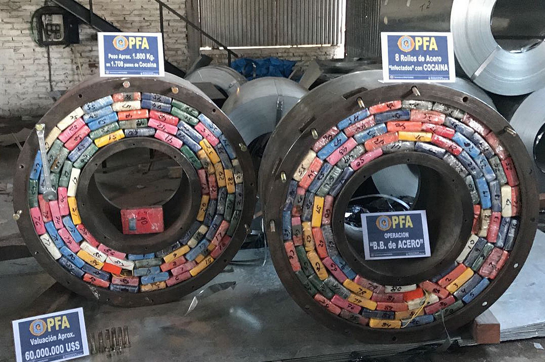 La operación, realizada por la Policía Federal Argentina (PFA), fue bautizada ‘B. B. de Acero‘ porque una tonelada y media de cocaína distribuida en 1.708 panes fue hallada dentro de ocho bobinas que deberían contener acero, en un depósito de Bahía Blanca, mientras que los otros 500 kilos fueron encontrados en un cargamento de piedras preciosas en un depósito de la mendocina ciudad de Luján de Cuyo.