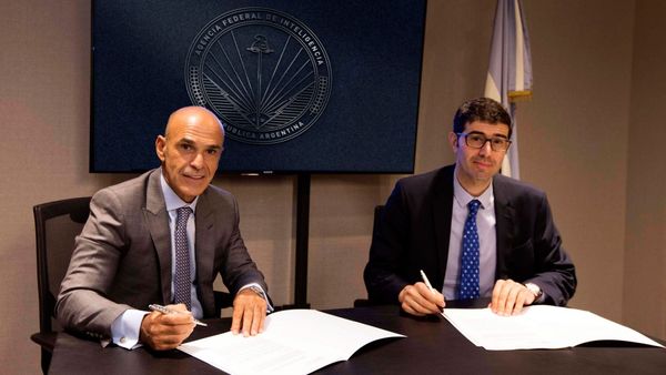 El director de la Agencia Federal de Inteligencia (AFI) Gustavo Arribas y el rector de la Universidad de San Andrés Lucas Grosman firmaron un acuerdo para llevar adelante actividades de cooperación y de intercambio académico y científico que se desarrollarán a través de diferentes convenios.
