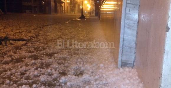 El temporal de lluvia y granizo afectó principalmente a las ciudades de Santa Fe y Paraná. Las piedras caídas tuvieron el tamaño de una pelota de tenis (foto de twitter).