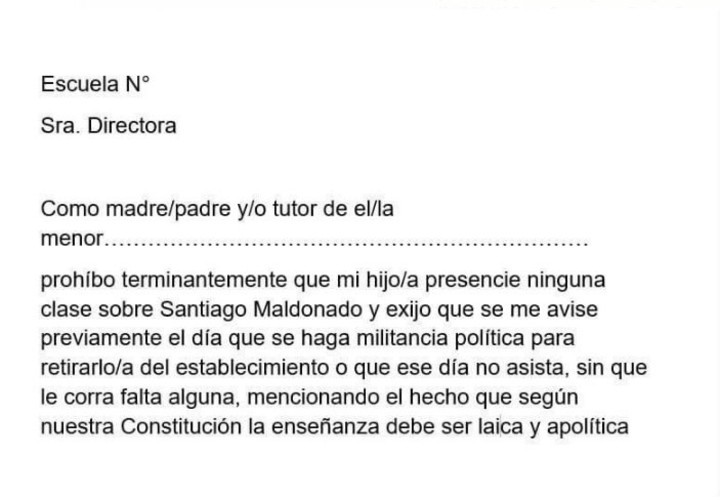 Entre los grupos de padres comenzó a circular un modelo de carta en el que prohíben que sus hijos participen de clases donde se hable de esta temática.
