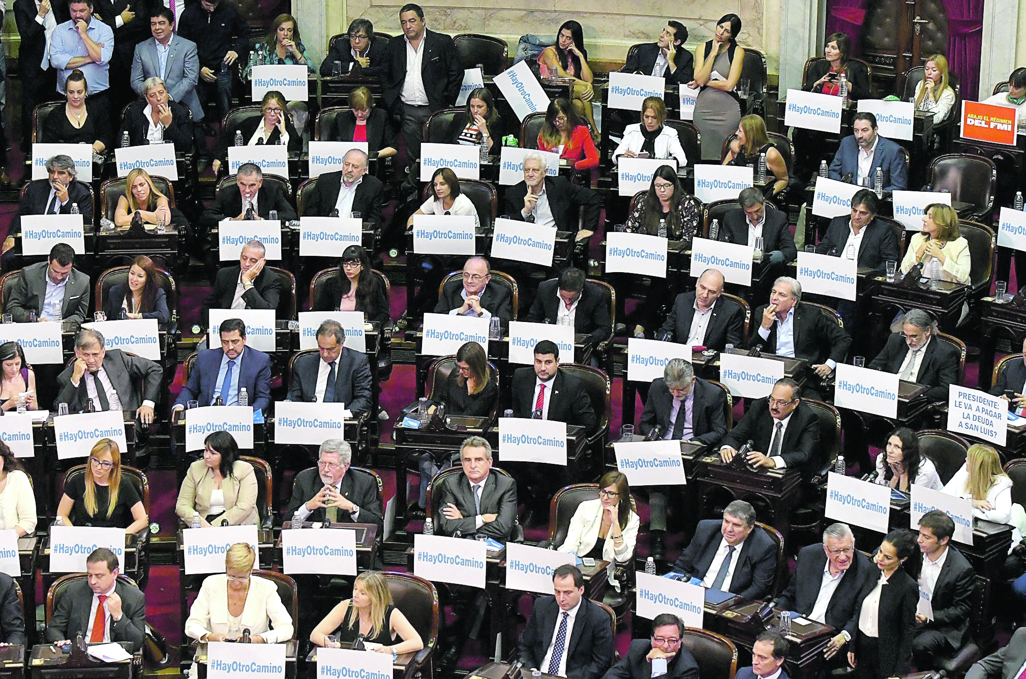 ‘Hay otro camino‘. Entre tantas consignas escritas en el Congreso, el kirchnerismo colocó afiches con la consigna ‘Hay otro camino‘.