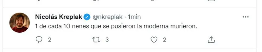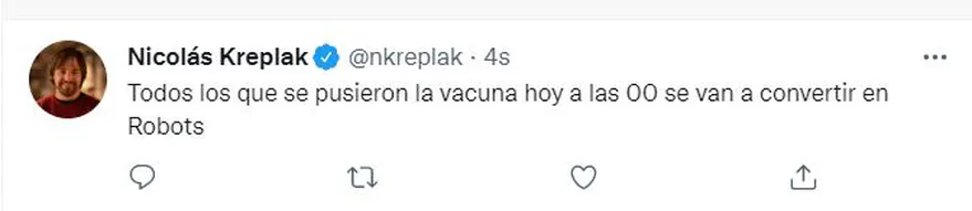 “Todos los que se pusieron la vacuna hoy a las 00 se van a convertir en robots” y “Uno de cada diez nenes que se pusieron la vacuna Moderna murieron” fueron algunos de los mensajes de índole antivacunas posteados desde el perfil del funcionario.