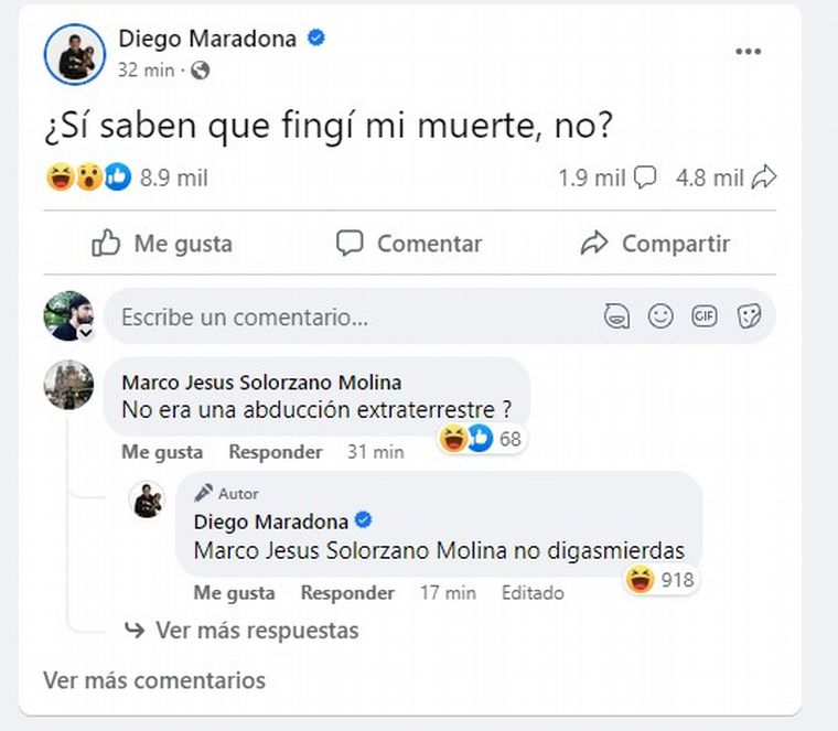 "¿Sí saben que fingí mi muerte, no?", escribieron este martes. La publicación no tardó en tener miles de comentarios, en su mayoría de repudio. Luego, desde la misma cuenta, le contestaron a diferentes usuarios.