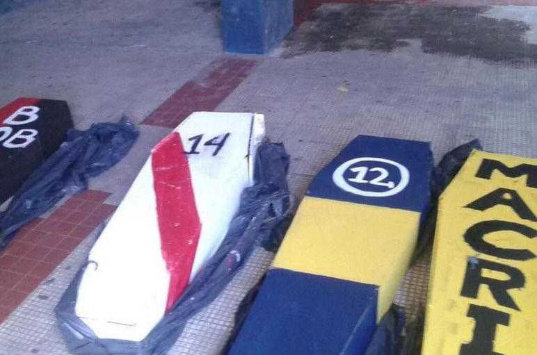 Los féretros, que iban a ser exhibidos por la hinchada durante el encuentro con el Tomba, hacen alusión a Boca, River, Newell”s y al presidente de la Nación, Mauricio Macri.