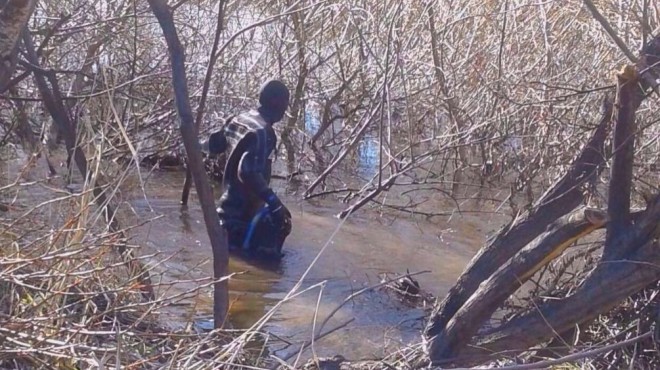 El rastrillaje se hizo, según fuentes de la investigación, en un tramo del río Chubut ubicado dentro del Pu Lof Cushamen que nunca había sido rastrillado hasta el momento.