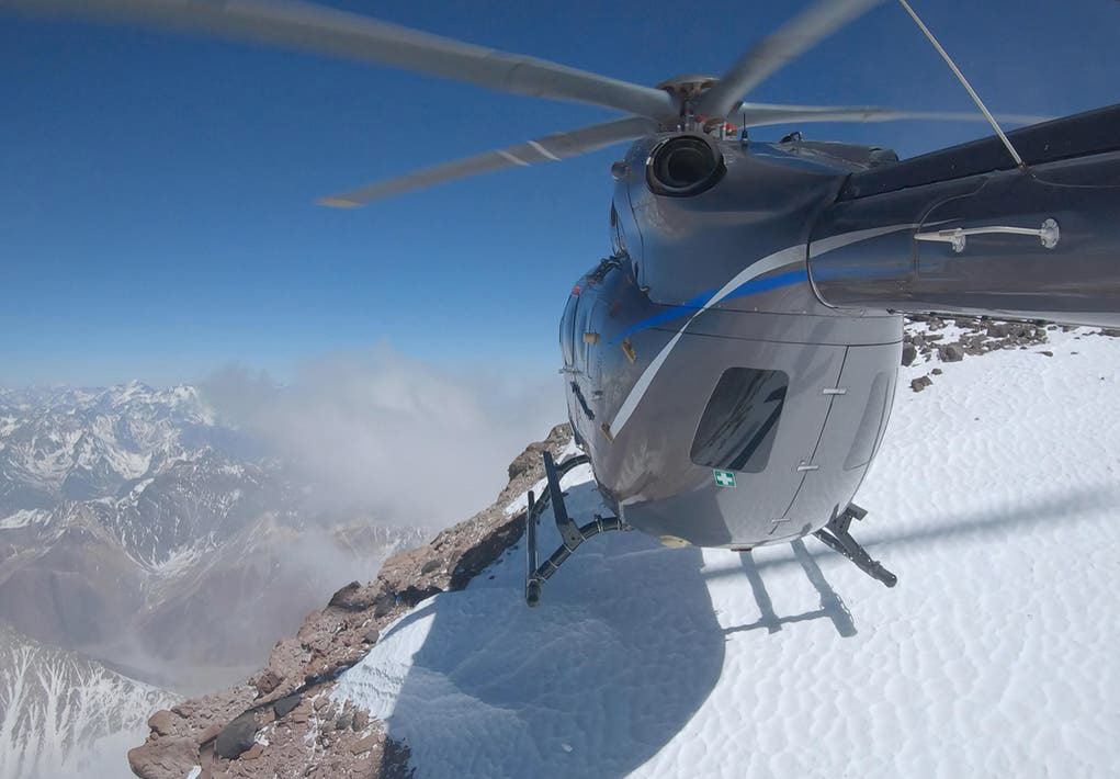 Se trata del helicóptero H145 de la fábrica europea Airbus, que tocó la nieve a 6.962 msnm después de un viaje de 15 minutos desde la base operativa del cerro. Hasta ahora, los rescates vía aérea alcanzaban los 5.500 metros.