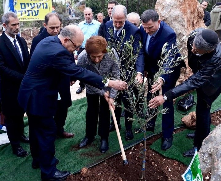 El presidente del Parlamento israelí, Yuli Edelstein, plantó un olivo al lado de una placa conmemorativa y recitó una oración judía en hebreo, con la ayuda del embajador de Argentina en Israel, Mariano Caucino, que oró en español, y de la madre de Nisman, Sara Garfunkel.