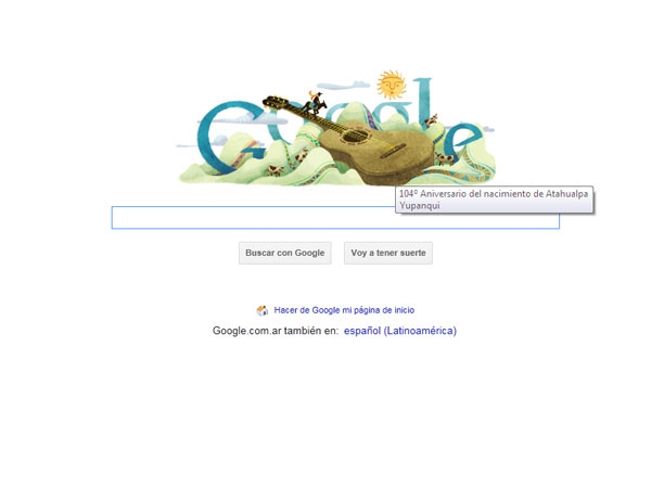 Con este Doodle, el buscador recuerda un nuevo aniversario del nacimiento de Yupanqui, que se produjo el 31 de enero de 1908 en Pergamino.