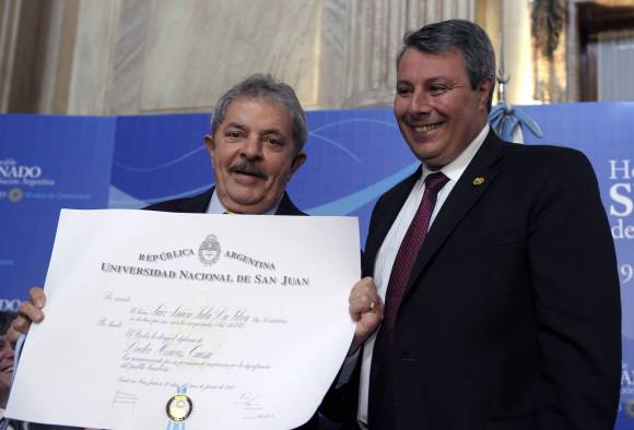 La UNSJ fue la quinta de ocho entidades educativas que homenajearon al político -participaron las nacionales de Lanús, Córdoba, Cuyo, La Plata, San Martín, Tres de Febrero y la Facultad Latinoamericana de Ciencias Sociales- y sus autoridades estuvieron presentes también en un encuentro previo, a puertas cerradas en el Salón Illia de la Cámara Alta, en el que pudieron dialogar con el reconocido dirigente brasileño.