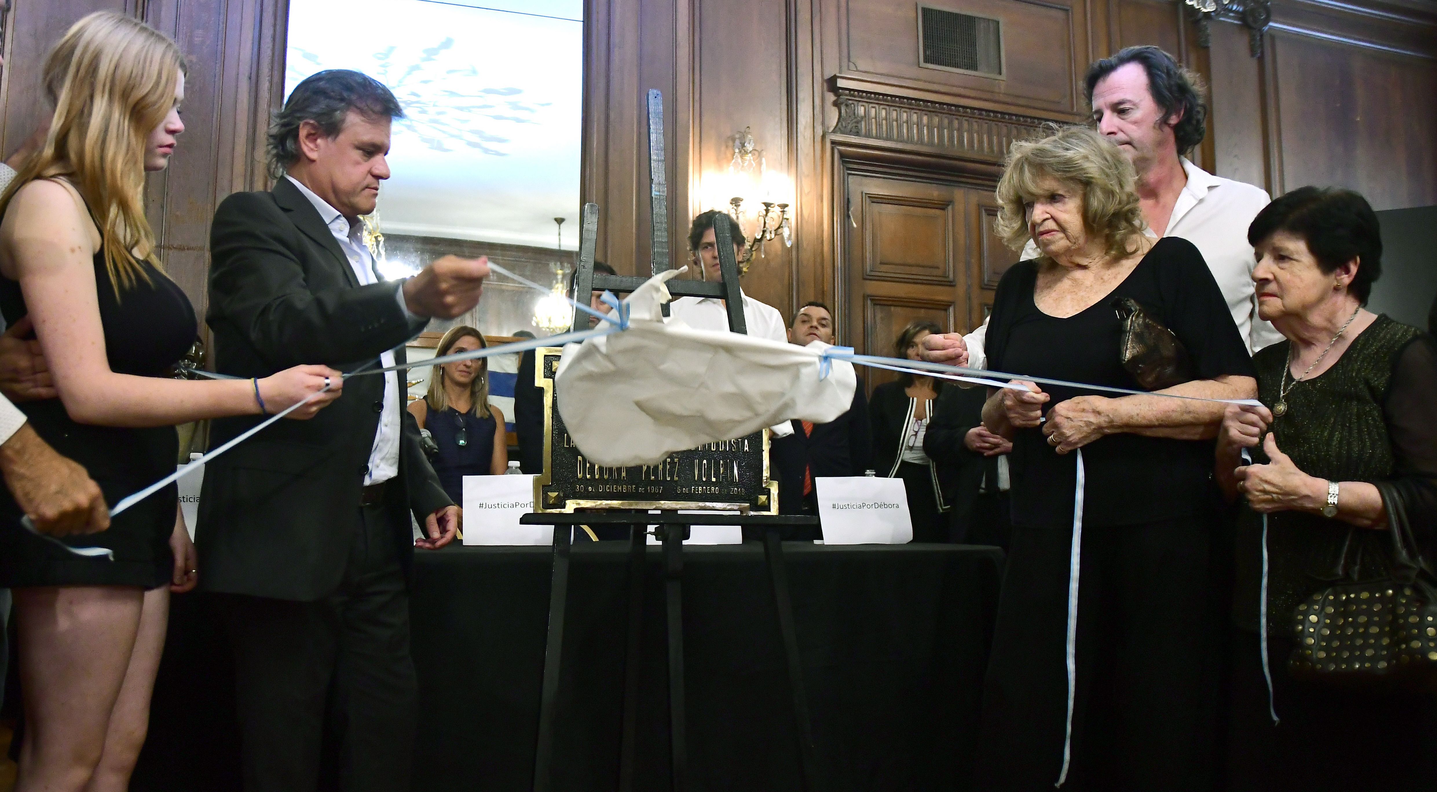 La inscripción que llevaba la placa conmemorativa recordaba el legado de la profesional: "La Legislatura de la ciudad de Buenos Aires, en homenaje a la legisladora y periodista Débora Pérez Volpin. 30 de diciembre de 1976 – 6 de febrero de 2018".