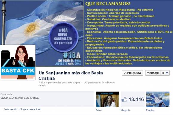 ‘18A un derecho para reclamar lo tuyo! #Seguridad #Justicia Basta de #Inflación y basta de #Korrupción‘, señala en una conocida red social uno de los grupos convocantes.