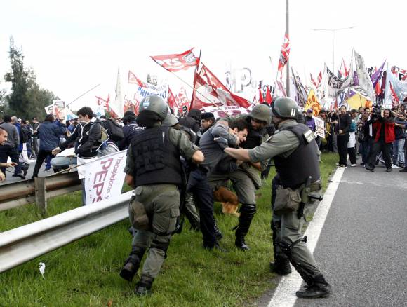 La de mayor repercusión tuvo lugar a primera hora, cuando manifestantes de agrupaciones de izquierda, encabezados por el diputado Néstor Pitrola (Partido Obrero) y Vilma Ripoll (MST-Nueva Izquierda) y gendarmes se enfrentaron en la autopista Panamericana, en el cruce con el puente Henry Ford, en el Km 35 de la autovía, a la altura de la localidad bonaerense de General Pacheco.