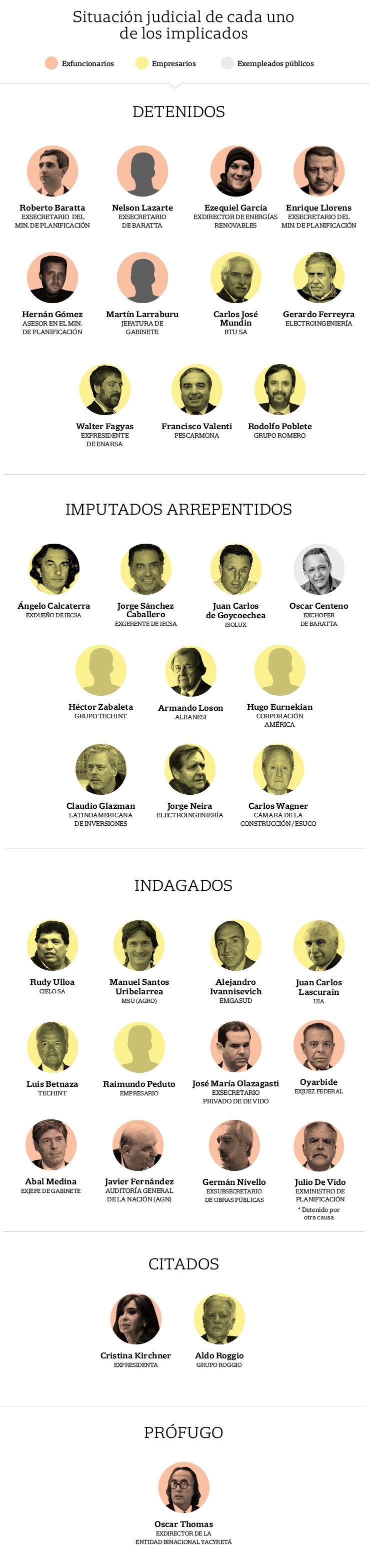 Cada día van ocurriendo novedades en la escandalosa causa que se empezó a investigar gracias al aporte de un chofer, Oscar Centeno (quien manejeba el vehículo con el que supuestamente Roberto Baratta cobraba las coimas), y que ha tomado una dimensión sin precedentes. Pero, ¿quién es quién en la investigación?
