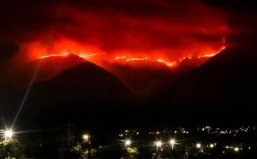 Leonardo Orgoroso, jefe de defensa Civil de Villa de Merlo, afirmó a la prensa local que si bien con la merma del viento el fuego se desplaza más lentamente, "igual avanza hacia las zonas pobladas" y aseguró que esta mañana el foco ígneo se ubicaba aproximadamente a cuatro kilómetros del Monasterio de Belén en la localidad de Carpintería.