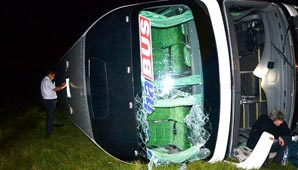 Buenos Aires, 22 de noviembre.- Un micro de la empresa Flecha Bus que se dirigía a Villaguay, Entre Ríos, viajaba por la ruta 12 cuando en el kilómetro 100, a la altura de Zárate, perdió el control y volcó luego de que un coche lo chocara de costado. La embestida dejó 40 personas heridas.