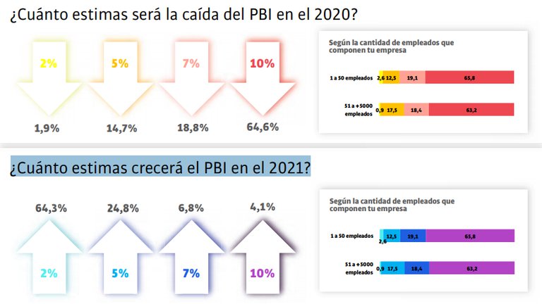 Y con respecto al crecimiento estimado para 2021, un 64,2% de la gente respondió que el revote será del 2%; un 24,8% se inclinó por un crecimiento del 5%, 6,8% dijo que será del 7% y 4,1% respondió que el crecimiento será del 10 por ciento.