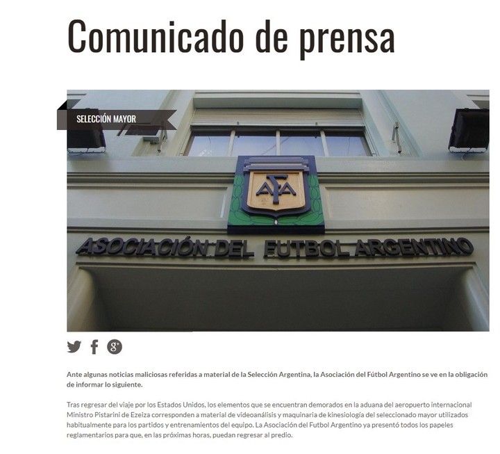 En el comunicado publicado en la web oficial, la AFA además explicó que "es toda maquinaria de trabajo" y que "habitualmente no se declaraban".