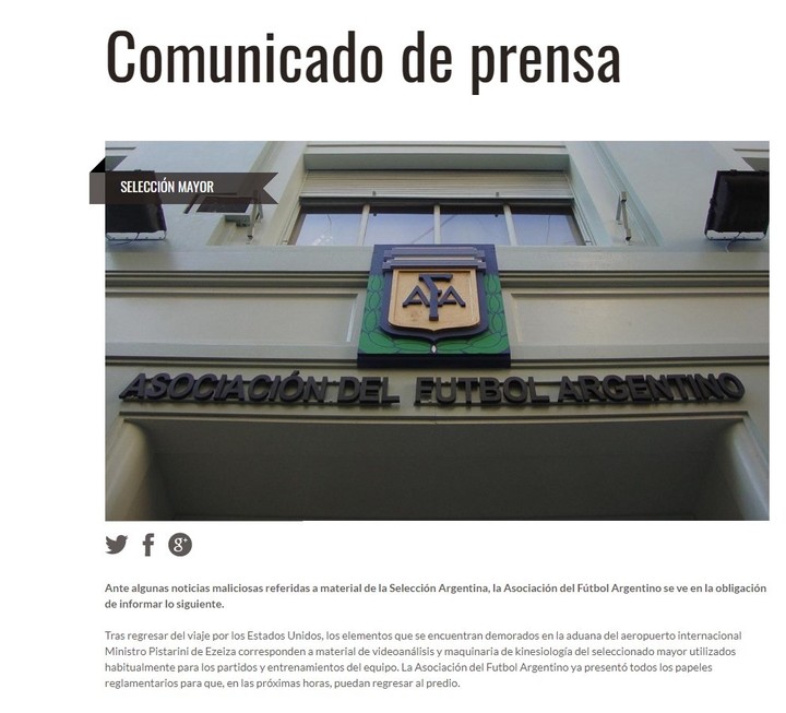En el comunicado publicado en la web oficial, la AFA además explicó que "es toda maquinaria de trabajo" y que "habitualmente no se declaraban".