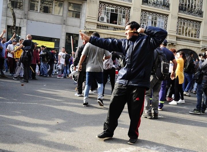 Dos grupos se enfrentaron en Av de Mayo y 9 de Julio: se tiraron palos y piedras. Hay varios heridos.