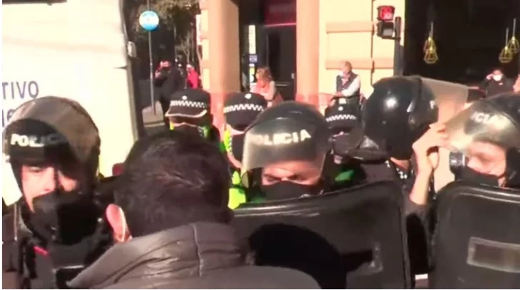 La Policía montó un operativo sobre la calle 25 de mayo, donde se registra la mayor tensión con los manifestantes que pretenden avanzar hacia la Plaza.