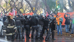 Mendoza.- Enfrentamientos entre la Policía y un grupo de dirigentes gremiales acompañados de legisladores fue el saldo que dejó una jornada de protesta en la Casa de Gobierno mendocina, este mediodía. Según denunciaron los manifestantes, fueron reprimidos y se les arrojó gas pimienta. A su vez, desde el Ejecutivo indicaron que se les pidió ‘amablemente’ a los trabajadores que desalojaran la calle y los efectivos fueron atacados.