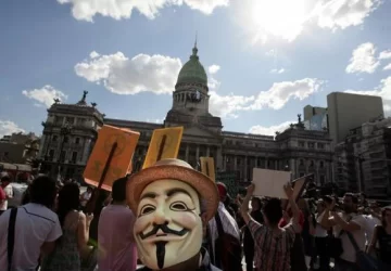 En Buenos Aires, alrededor de 800 “indignados” según los organizadores, aunque menos de 500 según la Policía, partieron a media tarde desde la plaza del Congreso hasta la Plaza de Mayo; y de forma pacífica, con grandes pancartas, instrumentos musicales, y disfrazados de payasos los más osados, expresaron su rechazo al actual sistema político y financiero internacional, al que culpan de la grave crisis que azota al mundo.