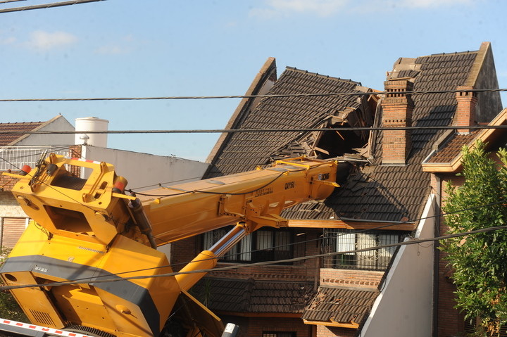Una grúa con la que se intentaba instalar una pileta en una vivienda del barrio porteño de Mataderos partió al medio el techo de la casa con su brazo hidráulico tras una aparente falla técnica.