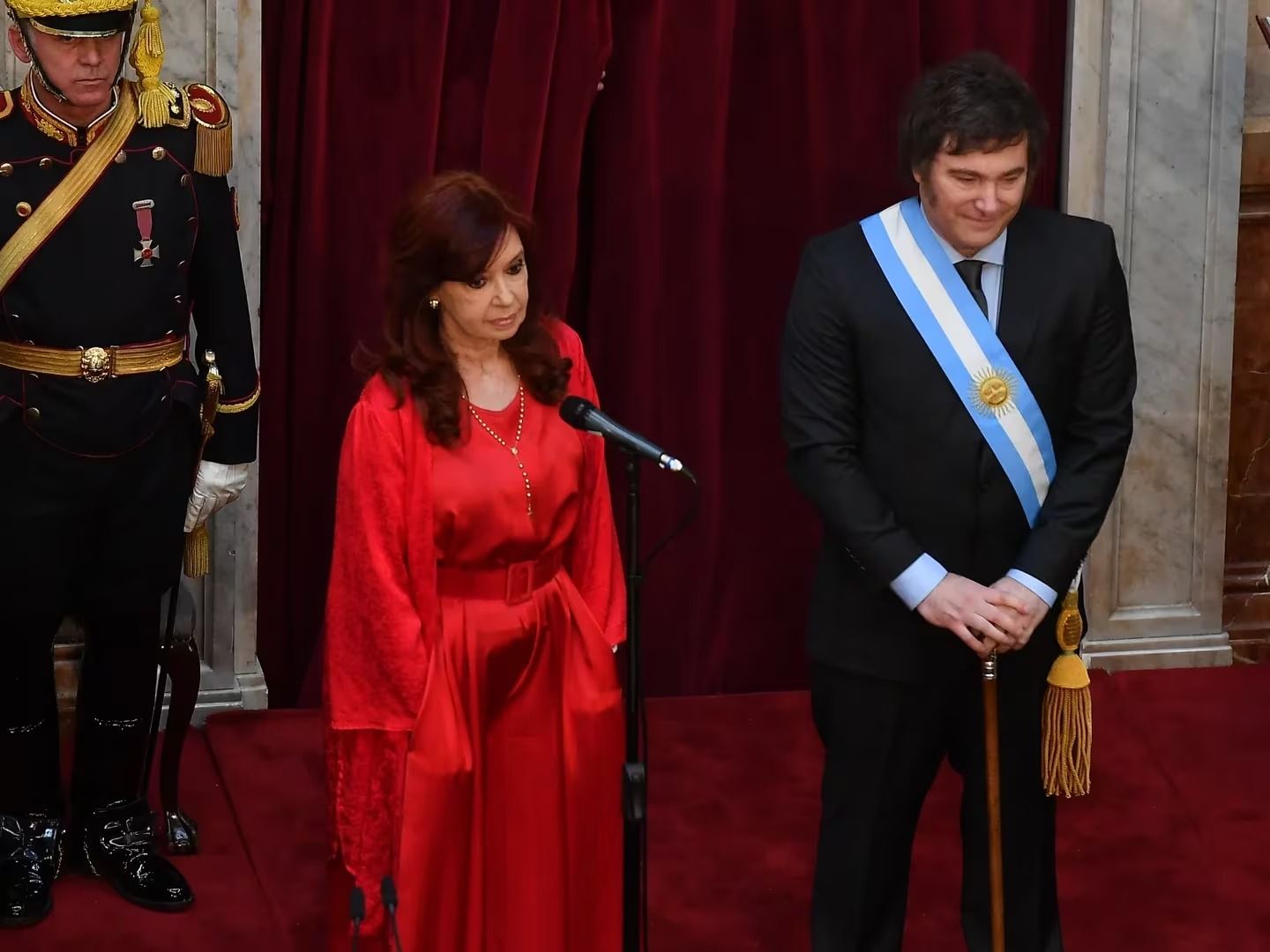 Fue entonces cuando Alberto Fernández ingresó al recinto fin de hacer la entrega de los atributos presidenciales. Una vez que el mandatario saliente le colocó la banda presidencial a Javier Milei, la ahora ex vicepresidenta se acercó al flamante jefe de Estado y, con una sonrisa cómplice, le hizo un comentario que le provocó una risa al referente libertario.