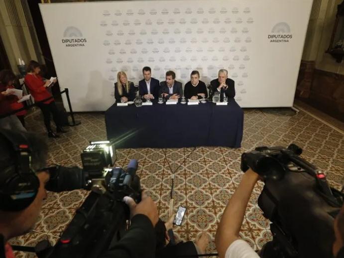 La presentación se hizo en una conferencia de prensa en el Congreso de la Nación, encabezada por los presidentes de la bancada radical, Mario Negri; del Pro, Cristian Ritondo; de Encuentro Federal, Margarita Stolbizer; de la Coalición Cívica-ARI, Juan Manuel López, y de Republicanos Unidos, Ricardo López Murphy.
