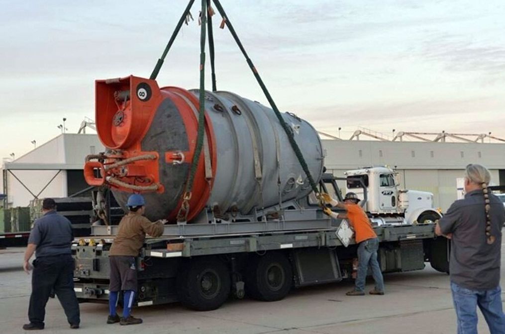 La “Cámara de Rescate Submarino” (campana) con un vehículo subacuático de operación a distancia llegó ayer a Comodoro Rivadavia. Tiene capacidad para rescatar hasta 6 personas por turno en profundidades de hasta 260 metros.