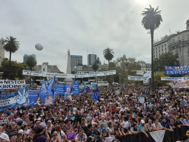 En tanto, la agrupación La Cámpora comenzaba a llegar a la histórica plaza desde la sede de la ex Esma, en el barrio Núñez, desde donde militantes y referentes de ese espacio realizaron su tradicional caminata.