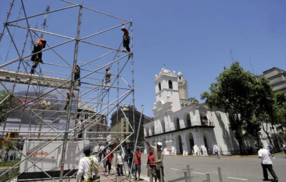 Efectivos de la Policía Federal cerraron al tránsito vehicular las calles Bartolomé Mitre, en avenida Paseo Colón, en la esquina de Diagonal Norte y Florida, y en Julio A. Roca y Alsina, a metros del Cabildo. En la Plaza de Mayo, justo frente a la entrada de la Casa Rosada grupos de trabajadores instalaron una estructura tubular de caños, para montar un escenario.