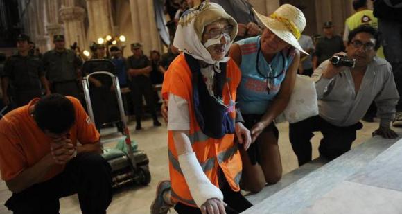 ‘Estoy feliz. Llegué, aquí estoy, he podido cumplir la promesa‘, dijo. Minutos antes en la plaza Belgrano, frente al templo, el sacerdote Daniel Blanchoud le dio la bienvenida y le acercó una imagen de la Virgen de Luján, que la anciana besó inclinando su cuerpo frágil y desgarbado.
