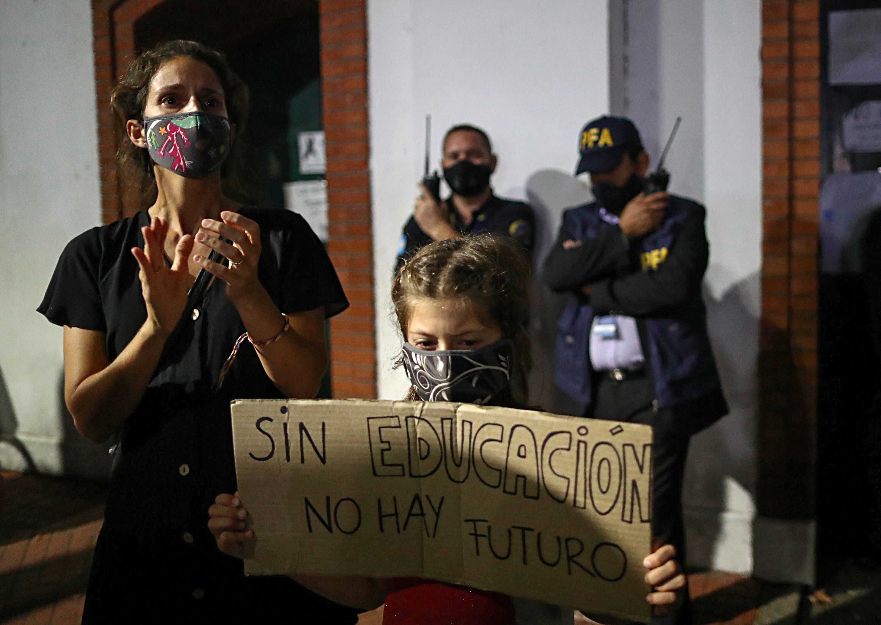 Por tercer día consecutivo, padres de miles de alumnos que desde este lunes no podrán tener clases presenciales por el cierre de escuelas decretado por Alberto Fernández en el AMBA, salieron a la calle a manifestar su bronca. Pero la protesta de ayer -bajo el hashtag 17A- cobró fuerza con una manifestación muy numerosas en el Obelisco porteño, la quinta presidencial de Olivos y el Ministerio de Educación. Y para el lunes está previsto un abrazo simbólico a los colegios de la Cuidad de Buenos Aires. Mientras, el gobierno porteño espera una respuesta de la Corte Suprema de Justicia a su pedido de amparo para mantener las clases presenciales.