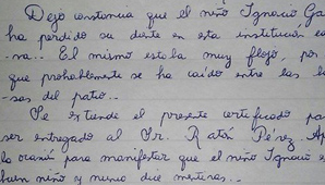 ‘Dejo constancia que el niño Ignacio Gabrielli ha perdido su diente en esta institución educativa. El mismo estaba muy flojo por lo que probablemente se ha caído entre las baldosas del patio. Se extiende el presente certificado para ser entregado al Sr. Ratón Pérez. Aprovecho la ocasión para manifestar que Ignacio es un buen niño y nunca dice mentiras’, dice la nota firmada por la docente.