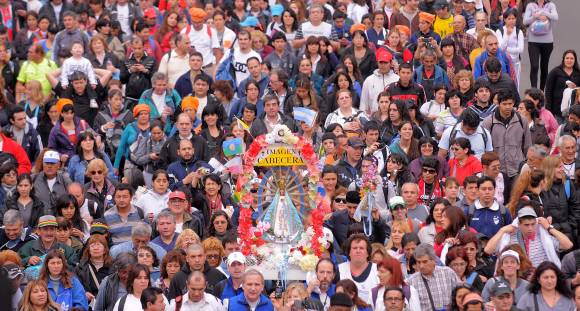 Miles de personas, en su mayoría jóvenes, caminaban ayer hacia la basílica de Nuestra Señora de Luján, distante a 60 km de la Capital Federal, en el marco de la 38 peregrinación a pie que lleva por lema ‘Madre, enséñanos a trabajar por la justicia‘. La columna principal, con la ‘imagen cabecera‘ de la Virgen, salió al mediodía de ayer desde el santuario de San Cayetano en Liniers y se espera que hoy arriben poco antes de las siete de la mañana. Los jóvenes expresan preocupación por las condiciones climáticas e intentan saber si la lluvia los sorprenderá en el trayecto, sobre todo durante la noche, haciendo más difícil llegar‘.