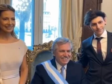 A su derecha está su pareja, Fabiola Yáñez, y a su izquierda su hijo Estanislao Fernández.