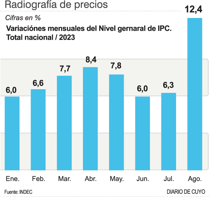 La dramática cifra (12,4%) estuvo cercana a las proyecciones de las consultoras privadas, quienes marcaban un piso de 11% para la inflación de agosto y un techo de 13%.