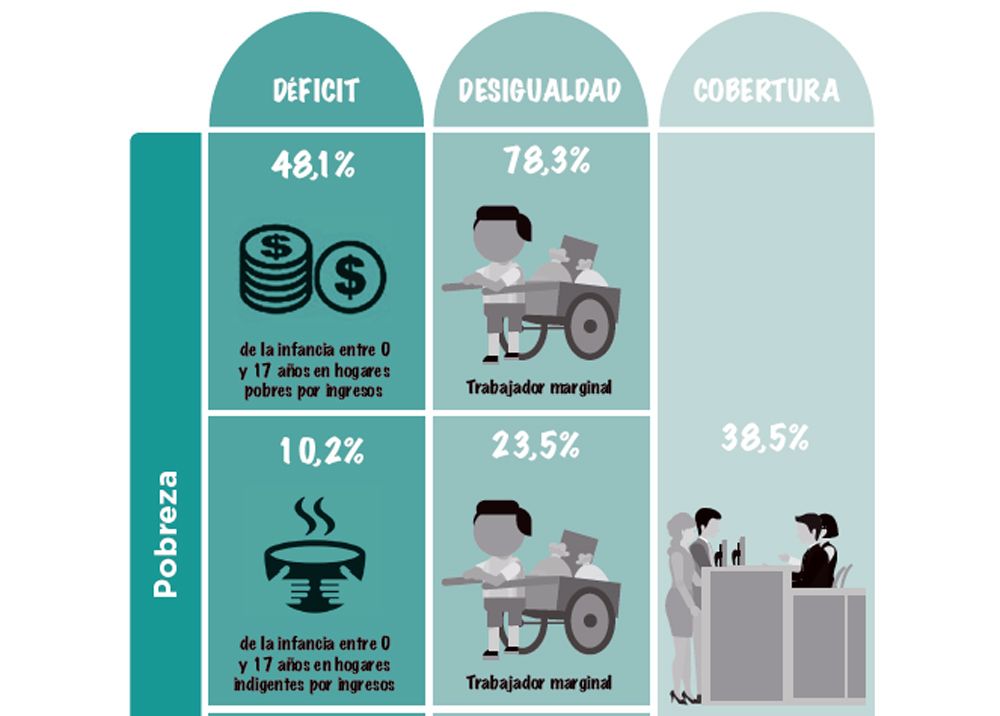 Las cifras, que son de finales del año pasado, podrían acrecentarse en un contexto como el actual con devaluación, inflación, shock tarifario y caída del salario real. El último índice de pobreza del INDEC marcó 25,7% en el segundo semestre del año pasado y se espera que regrese al 29% a fin de año, según estimaciones de la UCA . En el caso de la niñez el número es mayor porque se trata de una medición multidimensional, no solo en base al precio de la canasta básica.