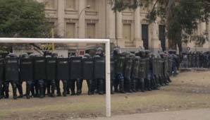 Córdoba, 23 de agosto.- Graves incidentes se registran en las afueras del Palacio de Justicia de Córdoba entre la Policía y empleados estatales que marcharon este jueves contra la reforma jubilatoria que impulsa el gobernador José Manuel de la Sota.
