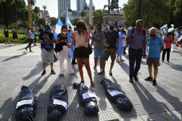 "Hoy dejamos bultos en la puerta de la Casa Rosada. El texto muestra claramente que representan a los argentinos que murieron por su irresponsable manejo de la pandemia y los nombres de los políticos son los de aquellos que recibieron las vacunas que deberían haberse aplicado a la población de riesgo y no a los privilegiados del poder", agregan, en referencia al esquema de vacunación paralela donde una decena de personas se vacunaron en la sede del Ministerio de Salud y otras más en el Hospital Posadas, sin respetar el esquema oficial.