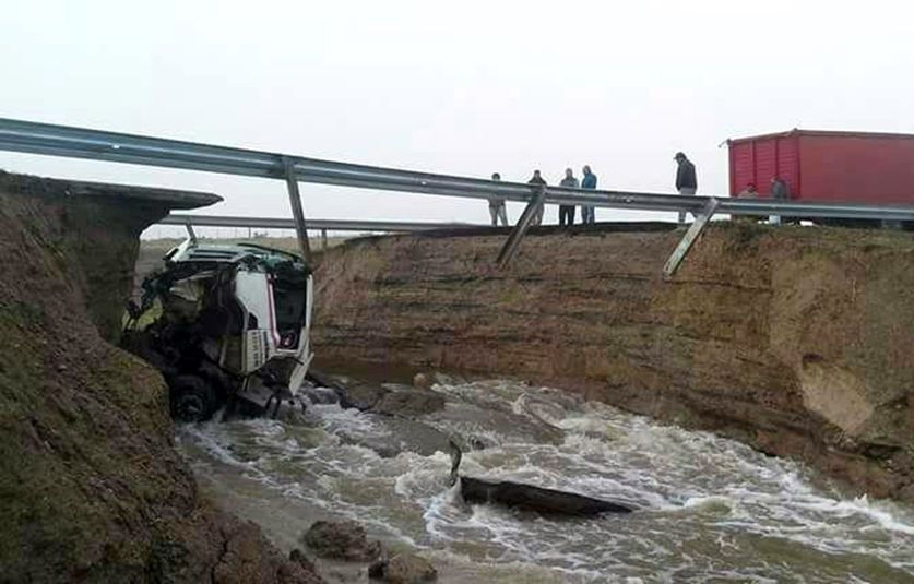 La cabina del camión cayó al vacío esta madrugada cuando la ruta cedió al ser socavada por el agua de las lluvias en el Km 1691, aunque el chofer, que sólo sufrió algunas contusiones, pudo salir del vehículo por sus propios medios. El Gobierno Nacional, provincial, municipal y de Defensa Civil ya trabajan en la zona para tratar de recuperar la vía de acceso a la ciudad que desde hace más de una semana es afectada por las lluvias, que dejaron un muerto y 3.000 evacuados.