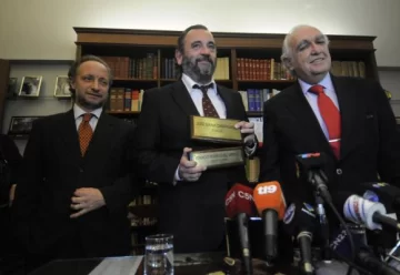 �El fiscal de instrucción José María Campagnoli (al centro) retomará hoy sus funciones en la Fiscalía de Saavedra, luego de que un Tribunal de Enjuiciamiento dejó sin efecto la suspensión que pesaba contra el funcionario judicial en el marco del juicio político que atraviesa por presunto mal desempeño en la investigación contra el empresario Lázaro Báez. La restitución de Campagnoli en el cargo ‘no va a ser plena hasta que no le devuelvan a los empleados, que son las condiciones necesarias para poder trabajar‘, dijeron sus abogados.