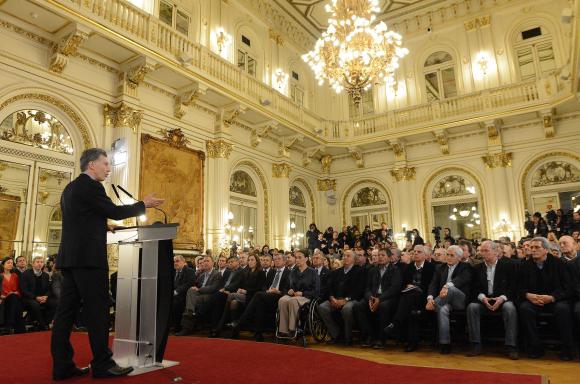 El anuncio fue realizado en el Salón Blanco de Casa de Gobierno, con la presencia del gabinete de ministros, gobernadores y representantes de gremios industriales y de servicios como Gerónimo Venegas (UATRE), Gerardo Martínez (UOCRA), José Luis Lingieri (Obras Sanitarias) y Andrés Rodríguez (Estatales), entre otros.