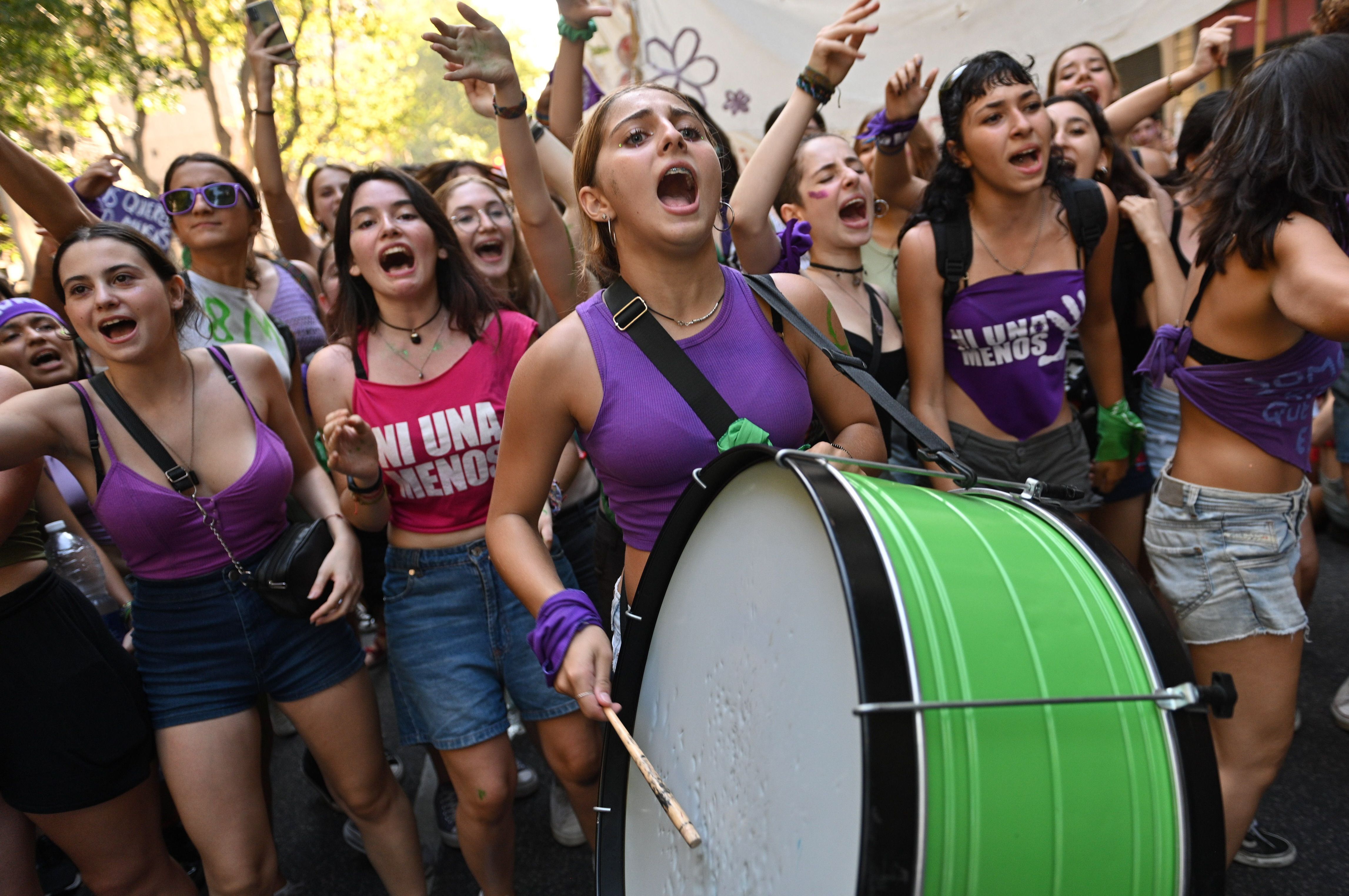La movilización convocada desde el colectivo ‘Ni Una Menos’ reunió a organizaciones sociales, políticas y sindicales, y también a miles de mujeres que se sumaron solas, en parejas, con amigas o en familia. En las fachadas se repetían pintadas con consignas sobre la igualdad de oportunidades laborales, junto a afiches que reclamaban justicia por víctimas de femicidio.
