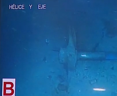 En la imagen se ve la hélice y eje desprendidos del submarino