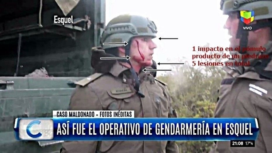 Las fotografías analizadas por Machado son tomas de la televisión que muestran al subalférez observando fijamente hacia adelante, como en estado de shock. En su rostro alcanzan a observarse cinco lesiones. Lo llamativo es que, según declaró el propio comandante del Escuadrón 36 de Esquel, Juan Pablo Escola, Echazú sólo recibió un impacto y de una sola piedra. A propósito de esto, sufrió doble fractura facial. Sin embargo, las imágenes dejan ver una herida al costado de su ojo derecho, la lesión en el pómulo –donde se generó la fractura–, por la que cae un hilo de sangre, una lesión en la mejilla, acompañada de una notoria erosión en la piel similar a un raspón, una rasgadura o arañazo en el mentón y finalmente una marca roja en su cuello que se extiende hacia atrás. Machado sospecha que todo este conjunto podría ser consecuencia de una pelea durante la cual alguien lo tomó fuertemente del cuello a Echazú.