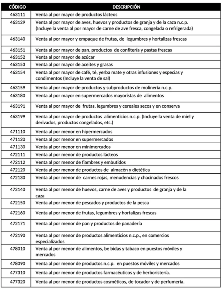 1-Qué compras comprende: La de cualquier bien mueble en determinados comercios y supermercados que tengan como actividad las siguientes, lo que remite al detalle que especifícó el gobierno (ver cuadro).